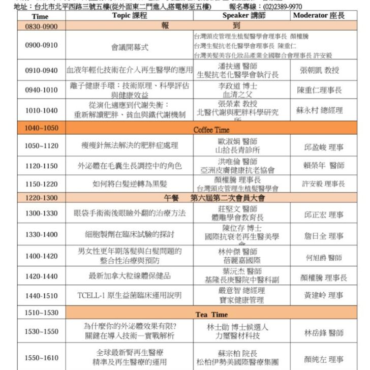 主辦單位:台灣生髮抗老化醫學會(內政部台內社第1010277969號) 協辦單位:台灣頭皮管理生植髮醫學會 &…